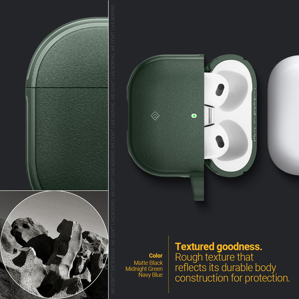 Our newest Airpods case is built with the timeless texture, grip, and security that Vault has embodied since the beginning. Vault is all about the bare necessities, resulting in a tough and grippy case, with a bumper to provide unparalleled drop protection. Technology is all about making your life easier, not harder and we believe our cases should do that too—that’s why Vault comes with a carabiner and built in hook to make carrying your AirPods 4 a breeze. *Device is not included.