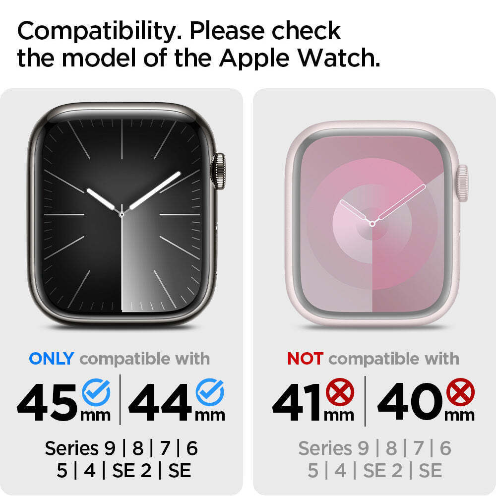 - Compatible with Apple Watch series 9 / 8 / SE 2 / 7 / 6 / SE / 5 / 4 (45/44mm) ONLY.