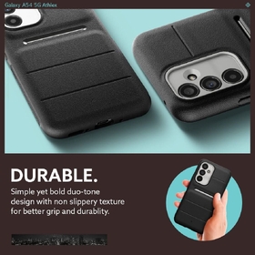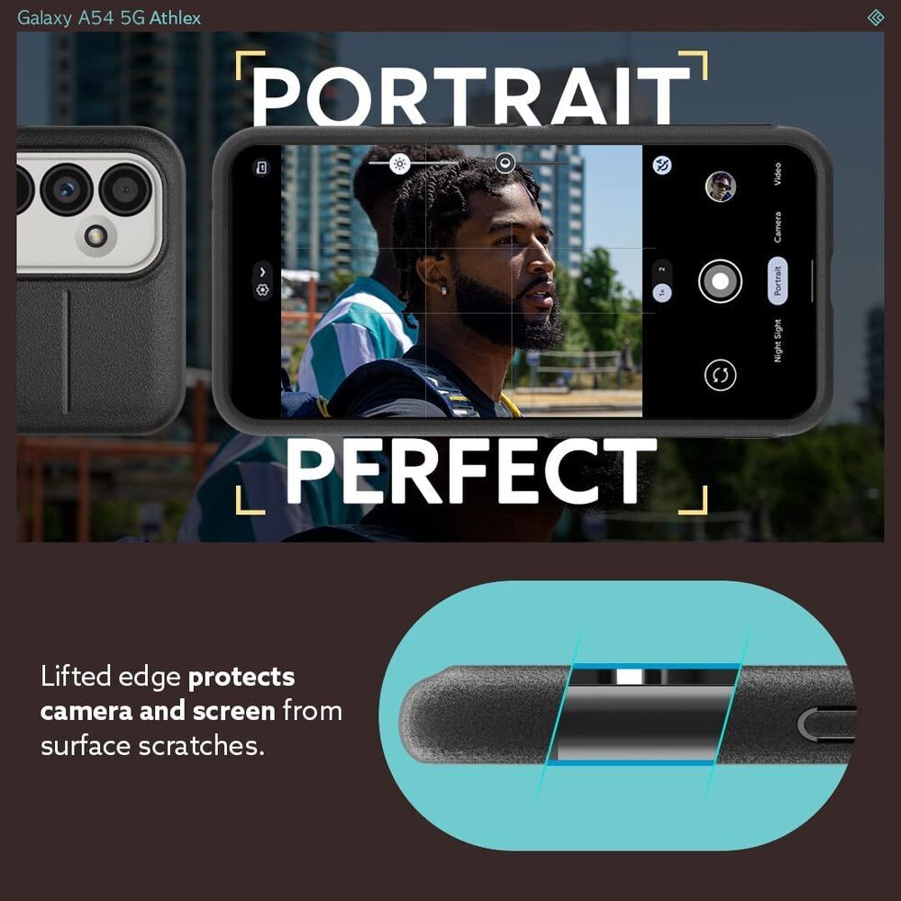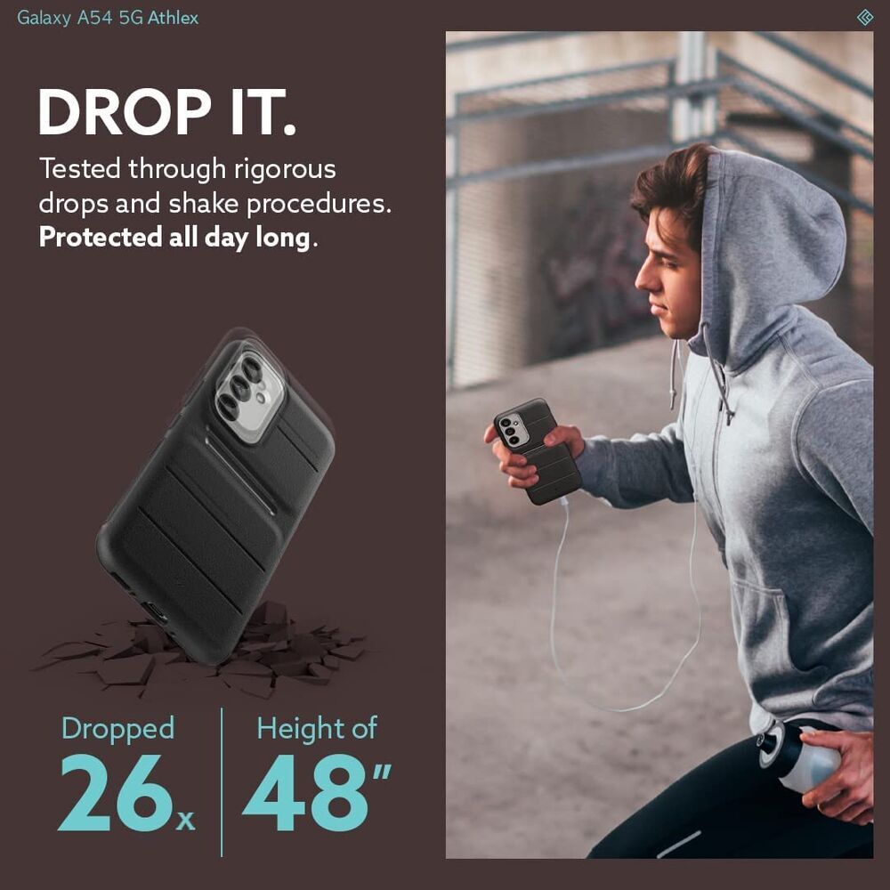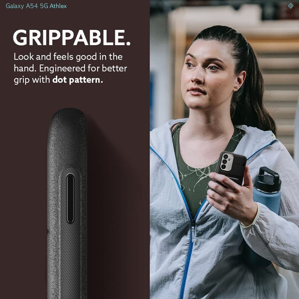 Flex your Galaxy A54 5G with Athlex. Designed with athleisure in mind, Athlex is here to look effortlessly cool while staying comfy. This protective Galaxy A54 5G case is made of two joined layers offering the most protection and durability for your device. Built to be ergonomically designed, accent lines provides the most comfortable fit for your fingers to land while giving you the stylish look with high-contrast neon colors. The rugged sandstone texture and reliable grip on either side keep Athlex in your hands and off the ground no matter what activity. Air Space technology in each corner provides cushioning for daily drops and fumbles. You pick the pace—Athlex will keep up.