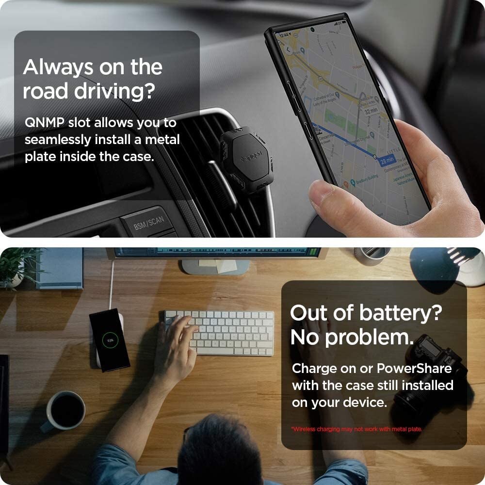 • Built-in slot for magnetic car mount metal plates (remove to wirelessly charge)