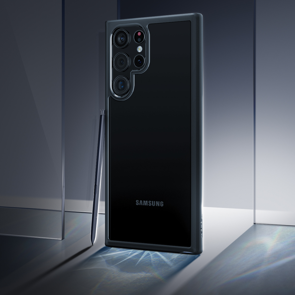 The Ultra Hybrid® is the optimum case for showcasing the sleek design of the Galaxy S22 Ultra while giving it the protection it deserves. The hybrid construction combines a shock-absorbent bumper with a clear back designed for long-lasting clarity. Its simple makeup maintains a slim frame that works with wireless charging, while precise cutouts keep features readily available. Preserve the look of the Galaxy S22 Ultra with secured drop defense by encasing it with the Ultra Hybrid®.