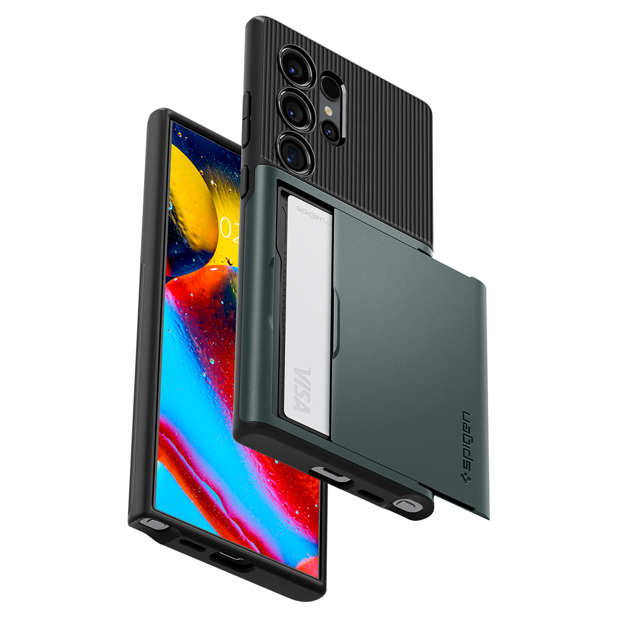 Expand your pocket real estate. Slim Armor CS makes your Galaxy S24 Ultra the only thing you need to carry. Its sturdy built-in wallet secures up to two cards and your phone from drops. Make the smart move and drop the bulky wallet. We got you.