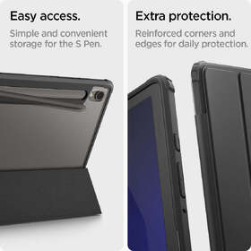 Flex your Galaxy. The Ultra Hybrid Pro showcases your Galaxy Tab S9 with its crystal-clear design. Its durable screen cover transforms into a kickstand for easy hands-free viewing or productivity mode. And it features two S Pen holders for even more room to store. *S Pen not included.
