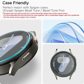 • The glass size may seem small, but it covers the entire active area of the watch screen. It is recommended that the protector be used together with a compatible Spigen case if it is preferred that the watch screen edge is also covered.