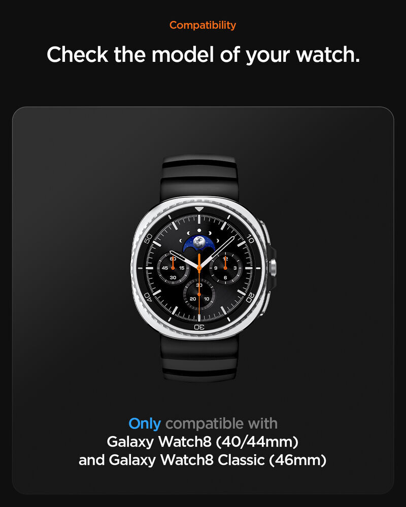 • Compatible with Samsung Galaxy Watch 8 40mm / 44mm / Classic 46mm. *Wrist size range: 5.3 - 9.2 wrist (135mm - 235mm)