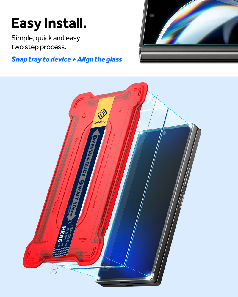 Say good bye to unseemly bubbles and fussing with your screen protector's fit—Caseology's Snap Fit is the hassle-free, high-tech solution to protecting your Galaxy Z Fold 6 (2024) screen. Our installation tray is an excellent guide to give you a flawless application, every time. Tempered glass is designed to work seamlessly with your device's fingerprint reading, while providing protection that won't compromise your phone’s natural feel. Oleophobic coating keeps it smudge-free for longer. Stay protected with premium, scratch-resistant protection that wards off all the sharp edges in your life and keeps your Galaxy Z Fold 6 (2024) looking fresh out the box.