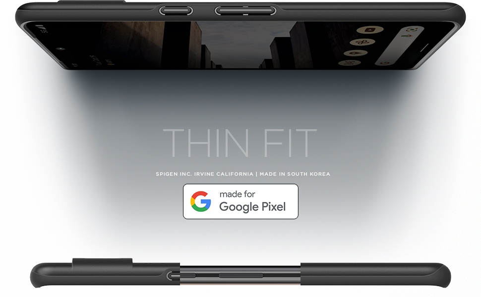 Put the thin in nothing. Cover your Pixel with Thin Fit for a timeless look. It features a slim silhouette that comfortably fits in your pocket and your hand. Don’t underestimate its minimal design: its drop protection is anything but minimal. *Metal plates are not advised to be used during wireless charging.