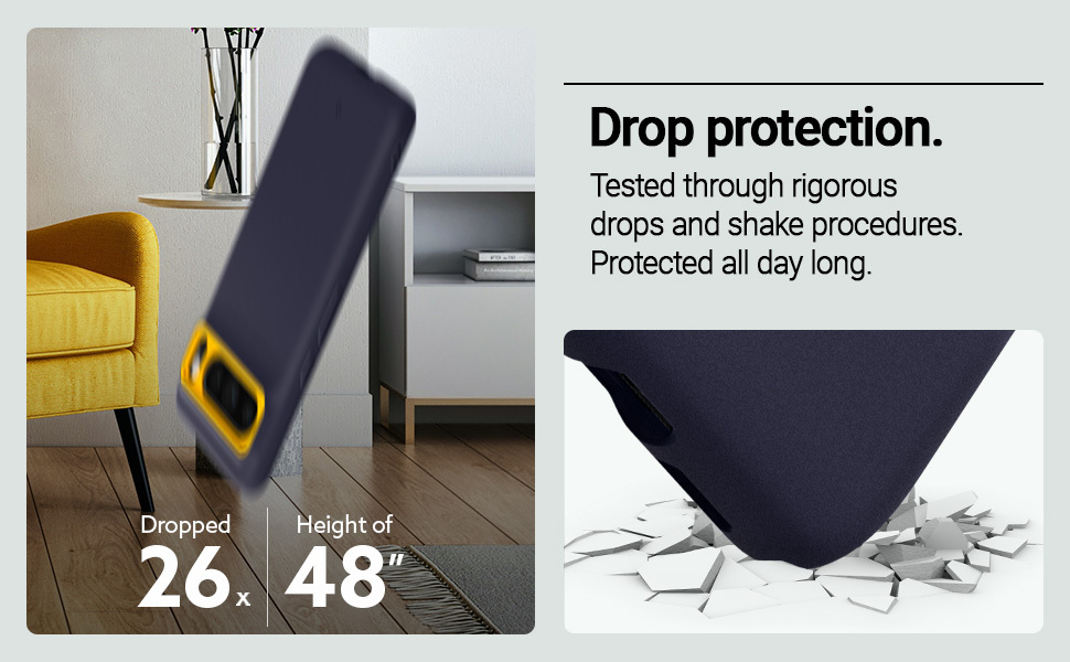 • Drop protection, wireless charging compatible.