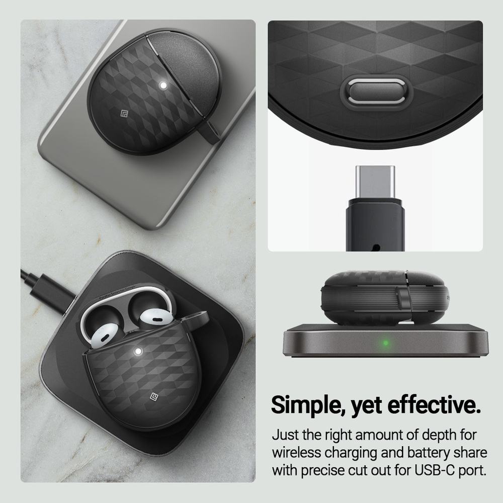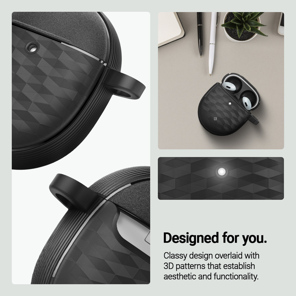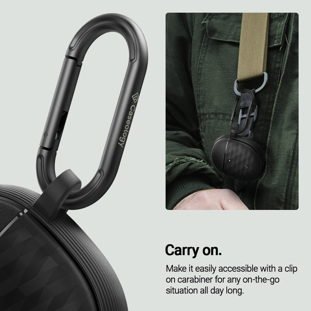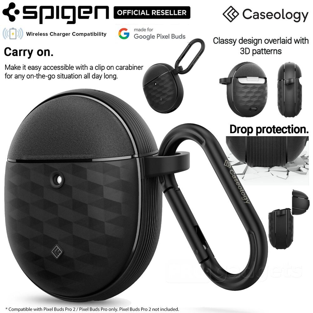 Classy design overlaid with 3D pattern that establish aesthetic and functionality. Tested through rigourous drops and shake procedures. Protected all day long. Make it easily accessible with a clip on carabiner for any on-the-go situation all day long. Just the right amount od depth for wireless charging and battery share with precise cutout for USB-C port. Compatible for Google Pixel Buds Pro / Pro 2. *Device is not included.