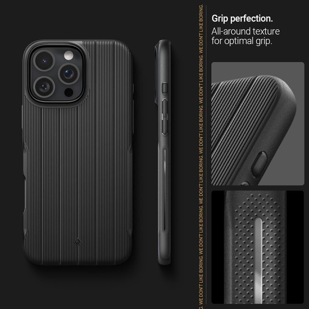 Stylish meets tough. Dual Grip Mag case, now compatible with iPhone 16 Pro is a sleek and stylish case built with dual layers for superior protection also offers scratch resistance against daily wear and tear. Stylish in the sense that Dual Mag Grip is designed with a stripe pattern all around to give a stylish look from any point of view, and protective with special grips built into both sides of the case as well as dual layers for maximum protection. Not to also mention, MagSafe compatible as well with an integrated magnet to keep your device secure and aligned. Caseology's stylish Dual Grip Mag case provided all that is needed in a case, grip where you need it; security at your fingertips. *Device is not included.