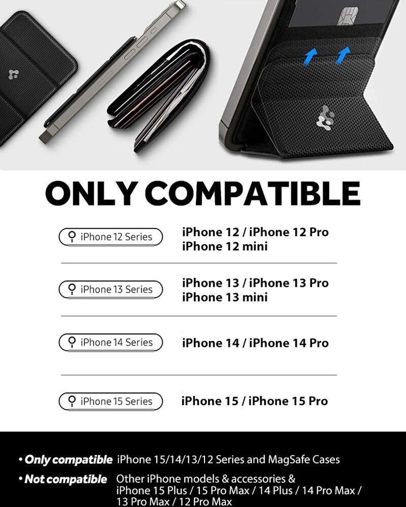 - ONLY compatible with iPhone MagSafe Series with MagSafe/Magnetic Cases. Magnet feature on the wallet will not hold with other iPhone models or Non-MagSafe Cases. *Kickstand features does NOT compatible with iPhone 17 Pro Max / 16 Plus / 16 Pro Max / 15 Plus / 15 Pro Max / 14 Plus / 14 Pro Max / 13 Pro Max / 12 Pro Max.
