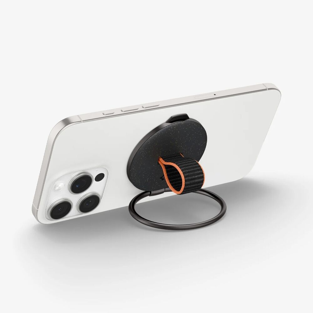 - Outer ring opens as adjustable kickstand for horizontal or vertical viewing.