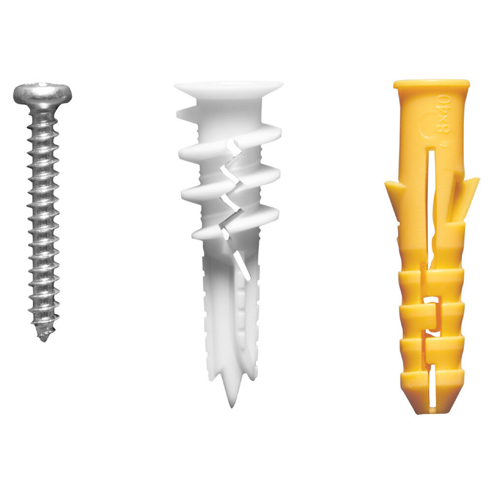 • Secure and drill-free installation, including screws, wall anchors, and double-sided tape.