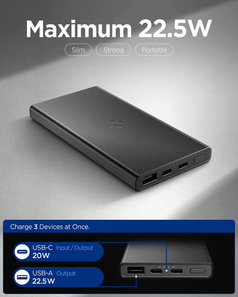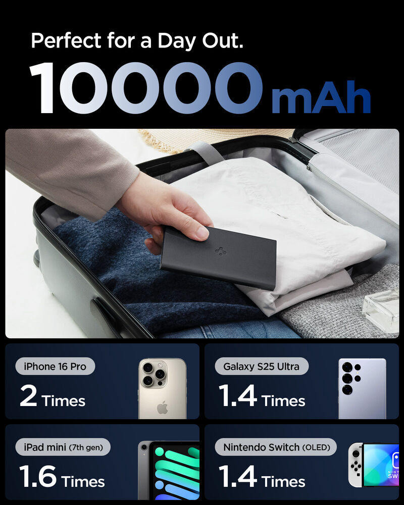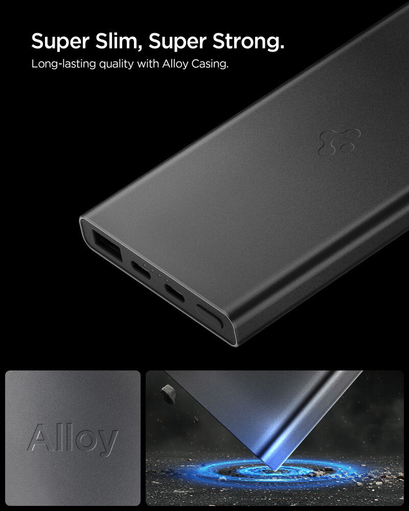 SPIGEN Essential QB USB-C USB-A 10000mAh 22.5W EA2210 3 Ports Power Bank for Universal [Colour:Black