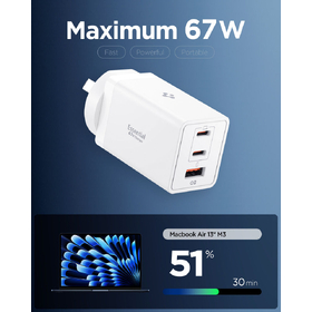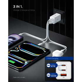 - Equipped with 3 ports - Port 1 : USB-C 67W, Port 2 : USB-C 67W , Port 3 : USB-A 22.5W, Port 1+(2+3) : 45W+18W